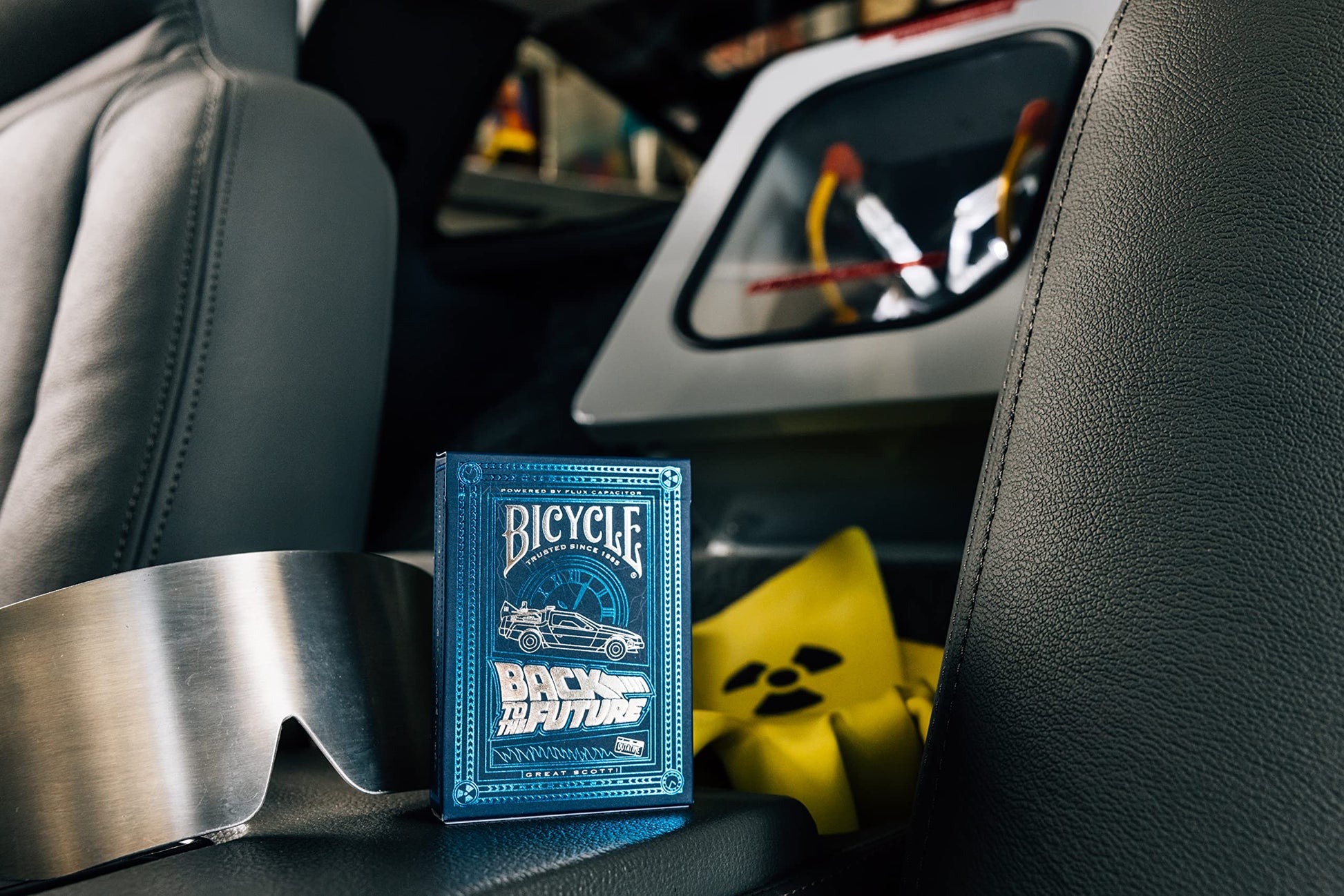 - BACK TO THE FUTURE PLAYING CARDS: Ignite your gaming sessions with our Bicycle Back To The Future Playing Cards. This dynamic deck of cards features the iconic DeLorean and a treasure trove of easter eggs, perfect for any Back To The Future fan