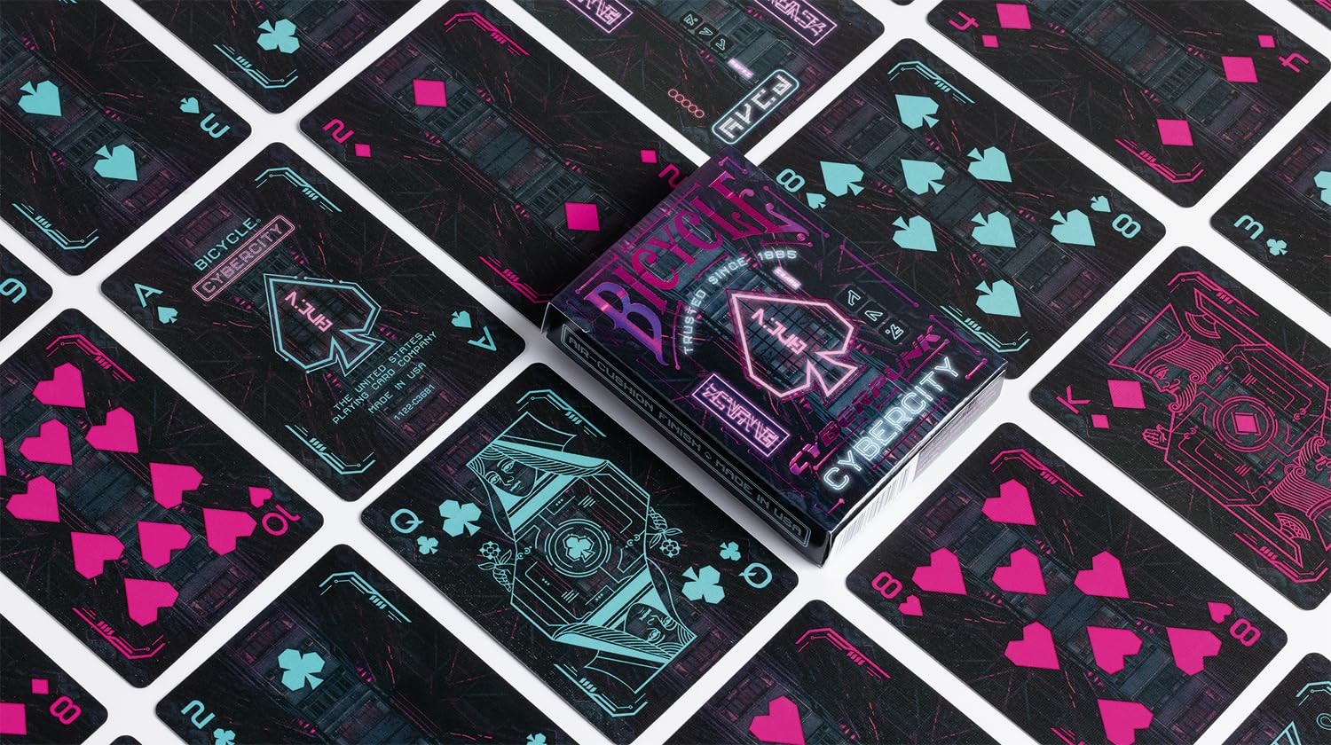 - Specially designed playing card deck inspired by sci-fi cyber technology