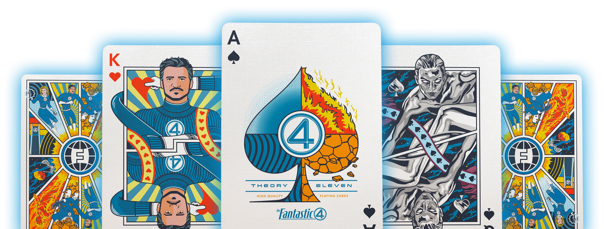 Every card in the deck was designed by hand, with all custom art on the court cards, Aces, Jokers, and card back design. Join Mister Fantastic, Invisible Woman, Human Torch, and The Thing as they face their most daunting challenge yet: protect the entire Earth.