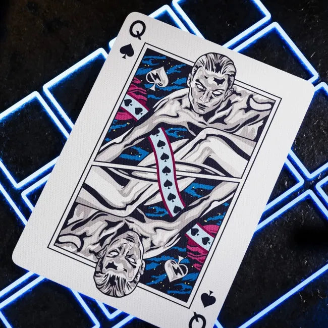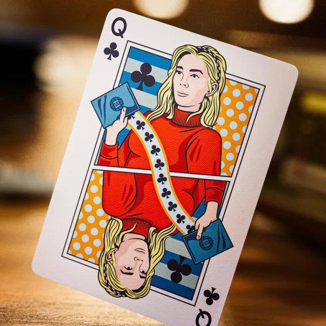 Housed in a retro-futuristic tuck case with dramatic embossing and metallic accents, the deck feels like it was plucked straight from a 1960s comic book shop. Open it up, and you’ll discover hand-illustrated court cards, Aces, Jokers, and backs, each one brimming with vibrant color and heroic flair.