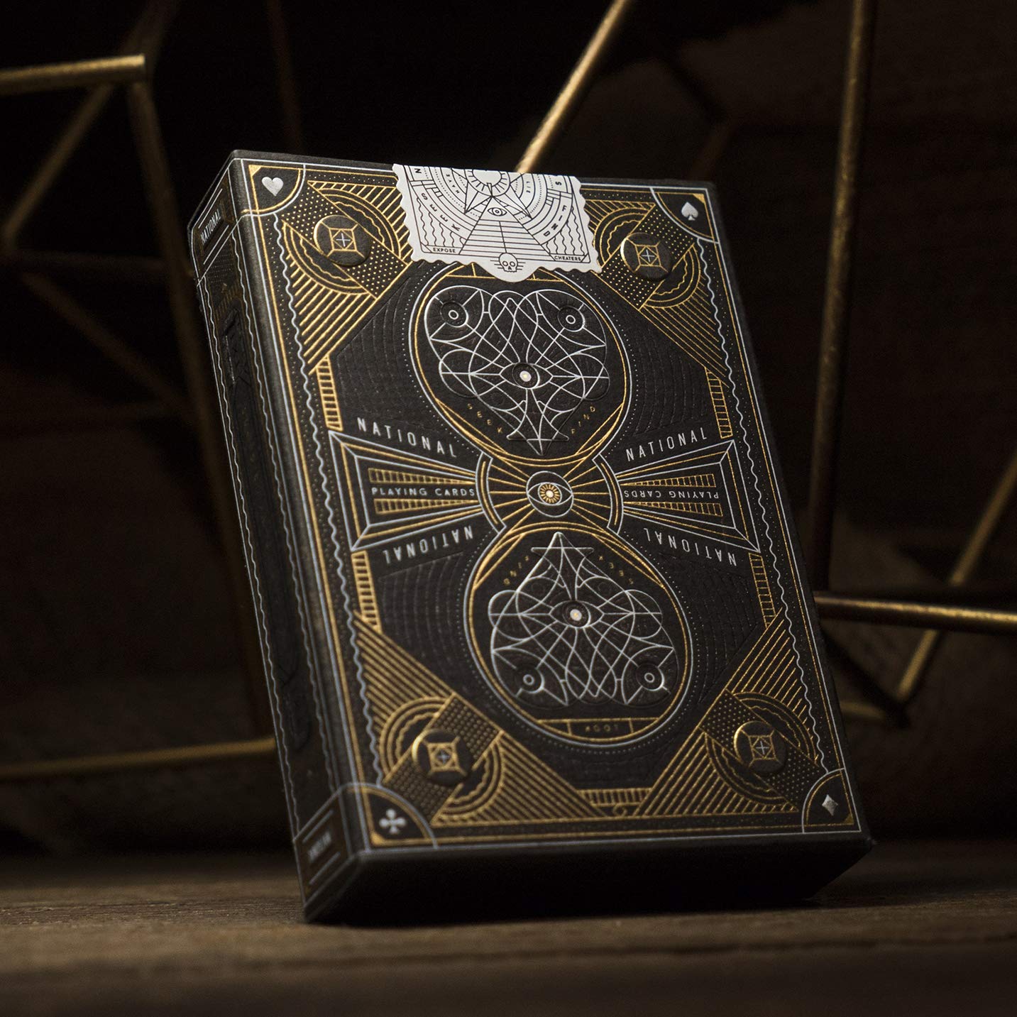 Luxury playing cards inspired by mystery and the pursuit of power. Completely custom artwork with a gold foil box. Made in the USA on FSC-certified paper derived from sustainable forests using vegetable based inks