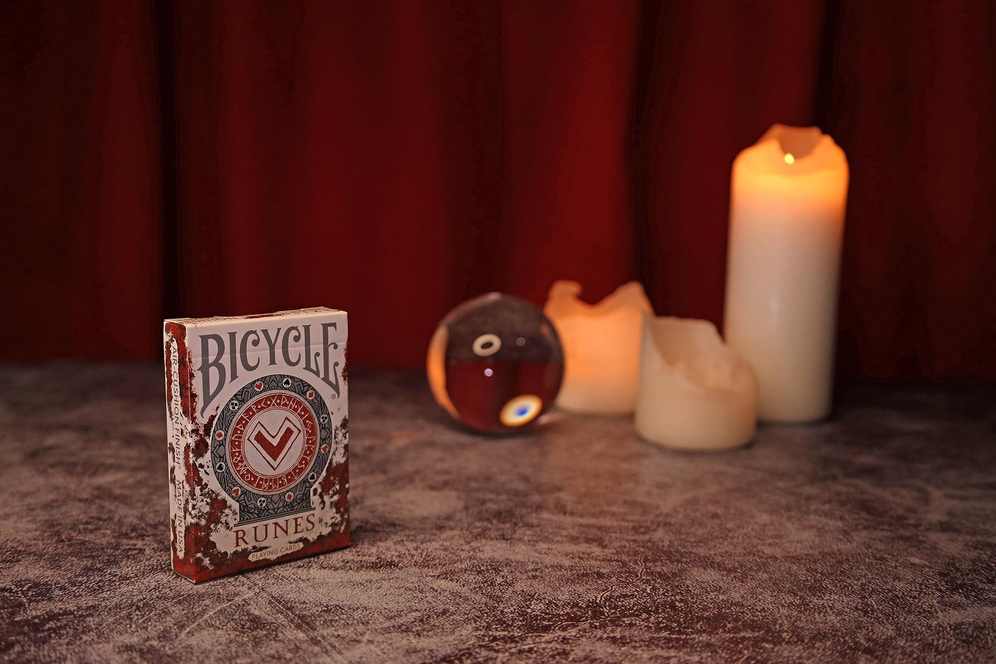 - - Updated Theme: In this updated version of the original Bicycle Runes deck in rich red and silver.