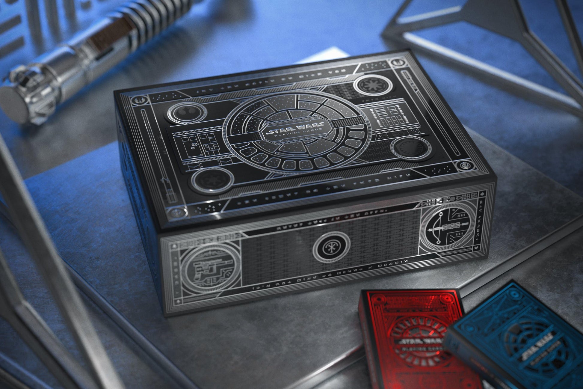 - BREATHTAKING CARDS: Inside are six decks of Star Wars Premium Playing Cards by theory11, each with red, blue, silver, and gold foil.
